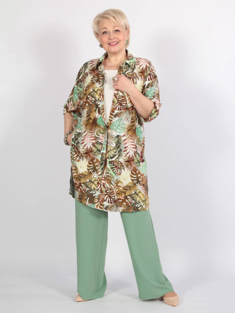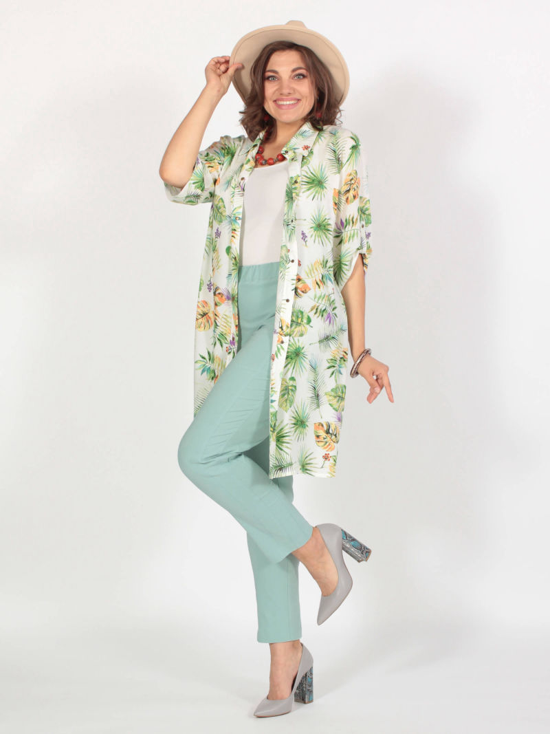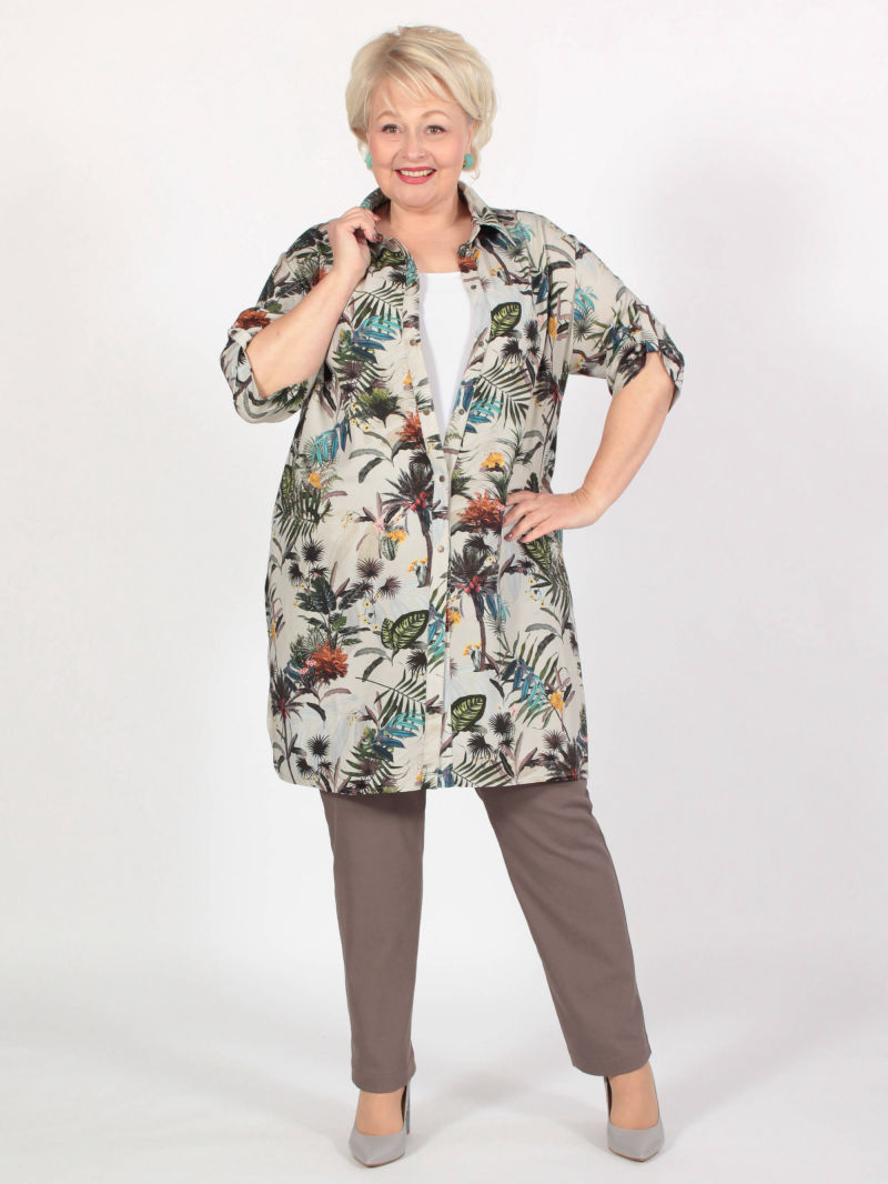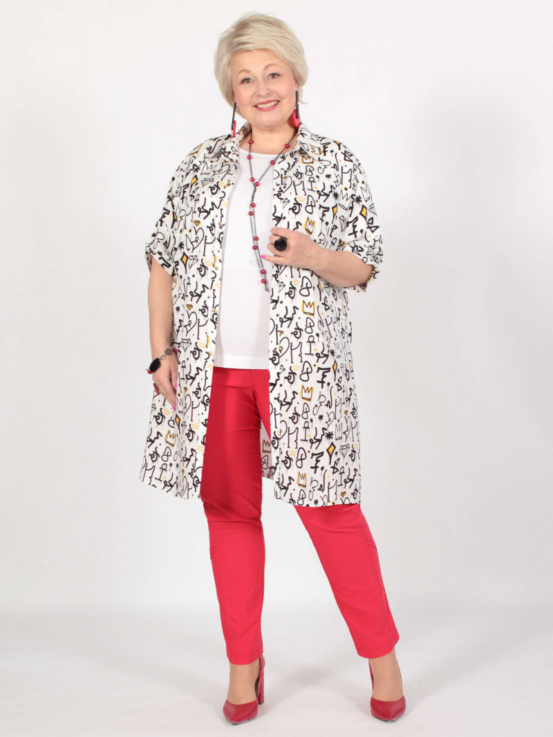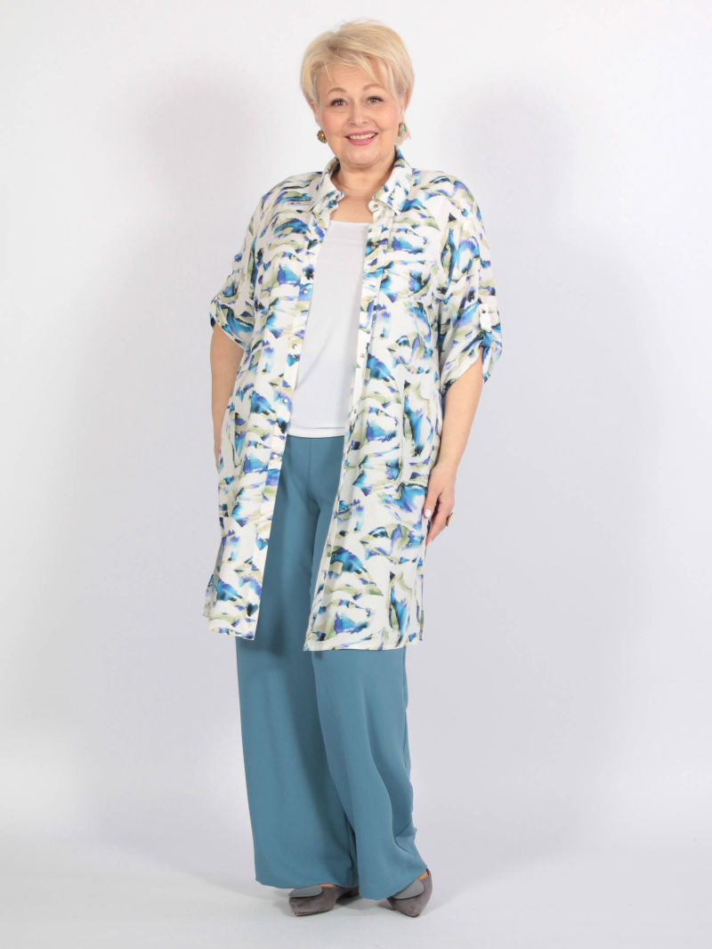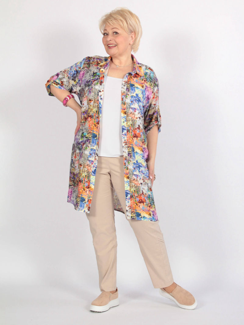 Легкая туника-рубашка из текстильной вискозы. Прямого силуэта с боковыми разрезами. Актуальная вещь для теплых дней. Может быть как самостоятельной блузкой, так и накидкой поверх майки. Блузка свободная, легкая, красивая, её легко комплектовать с разного цвета брюками, леггинсами, топами. И каждый раз это будет смотреться по-новому. РЕКОМЕНДАЦИЯ ПРОИЗВОДИТЕЛЯ! При выборе этой туники из текстиля просим проверить свои параметры в соответствии с нашей размерной сеткой, находящейся на месте последнего фото. Для создания образа могут подойти такие модели: брюки арт. 62891867, арт. 66224600, арт. 63992037, арт. 66217516