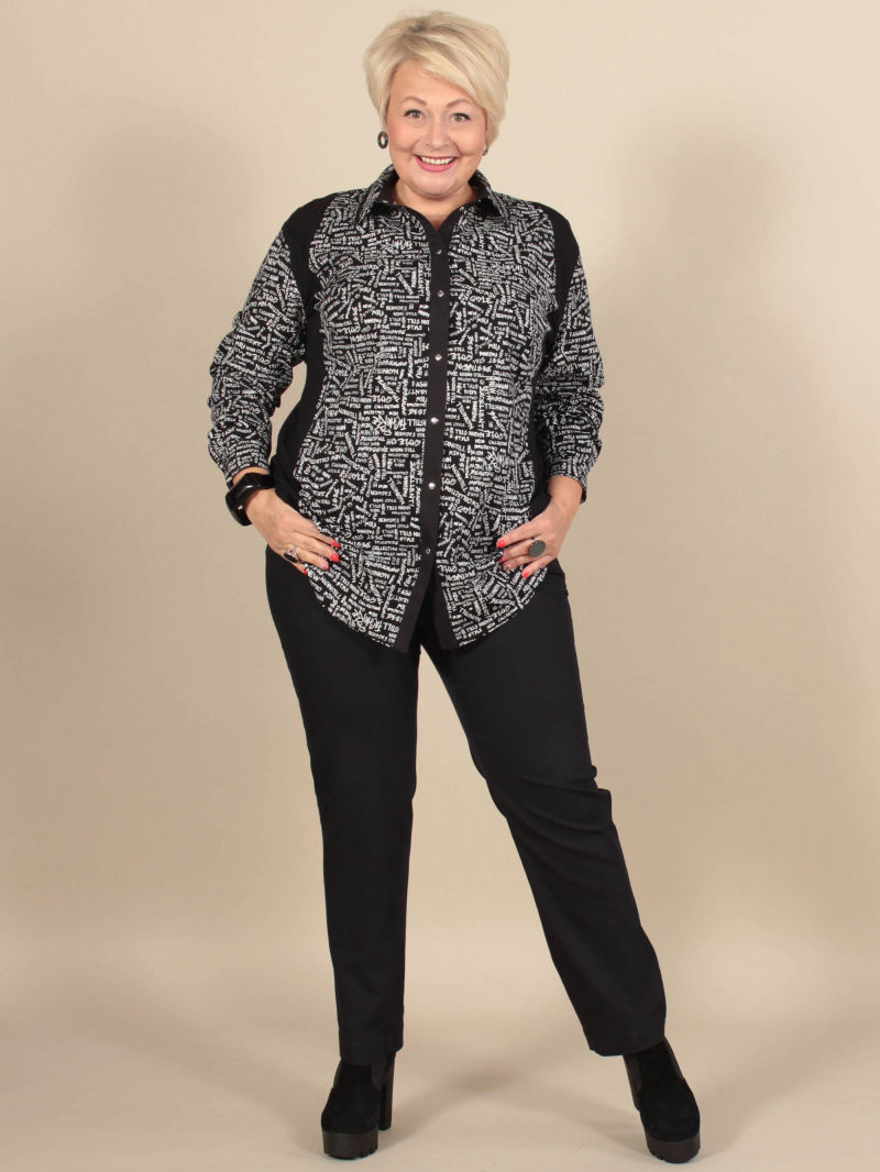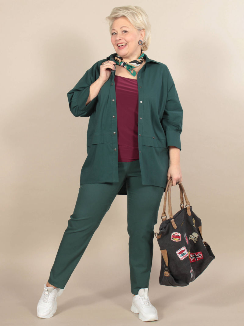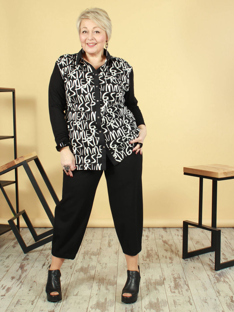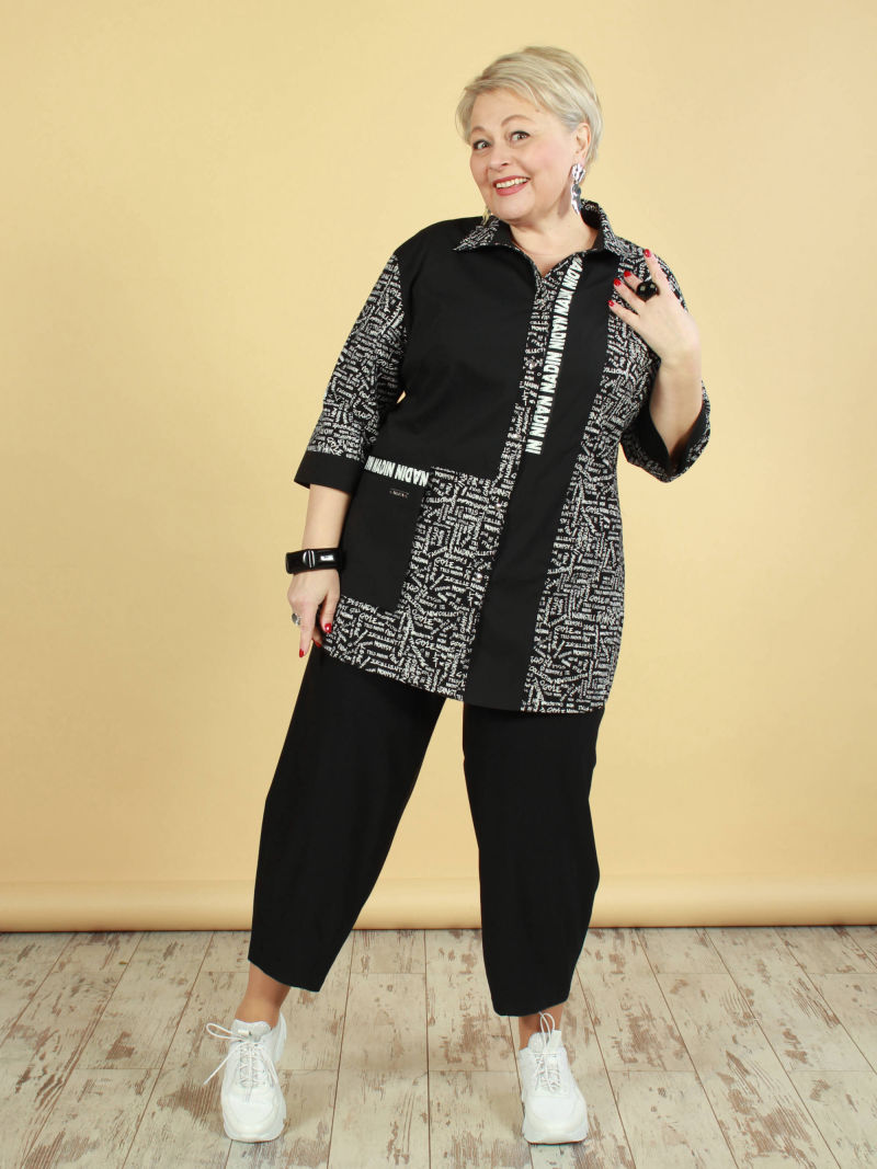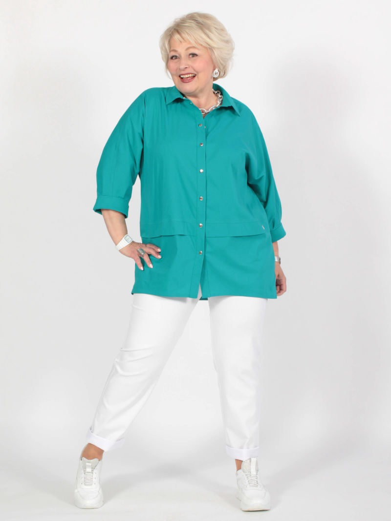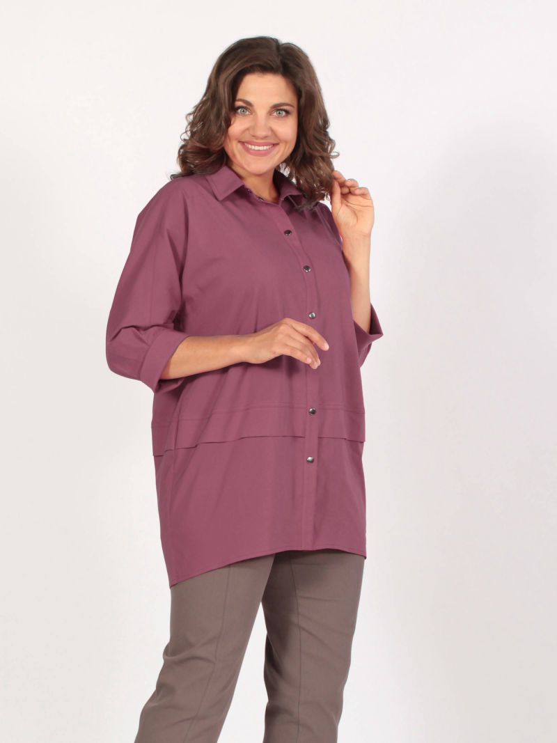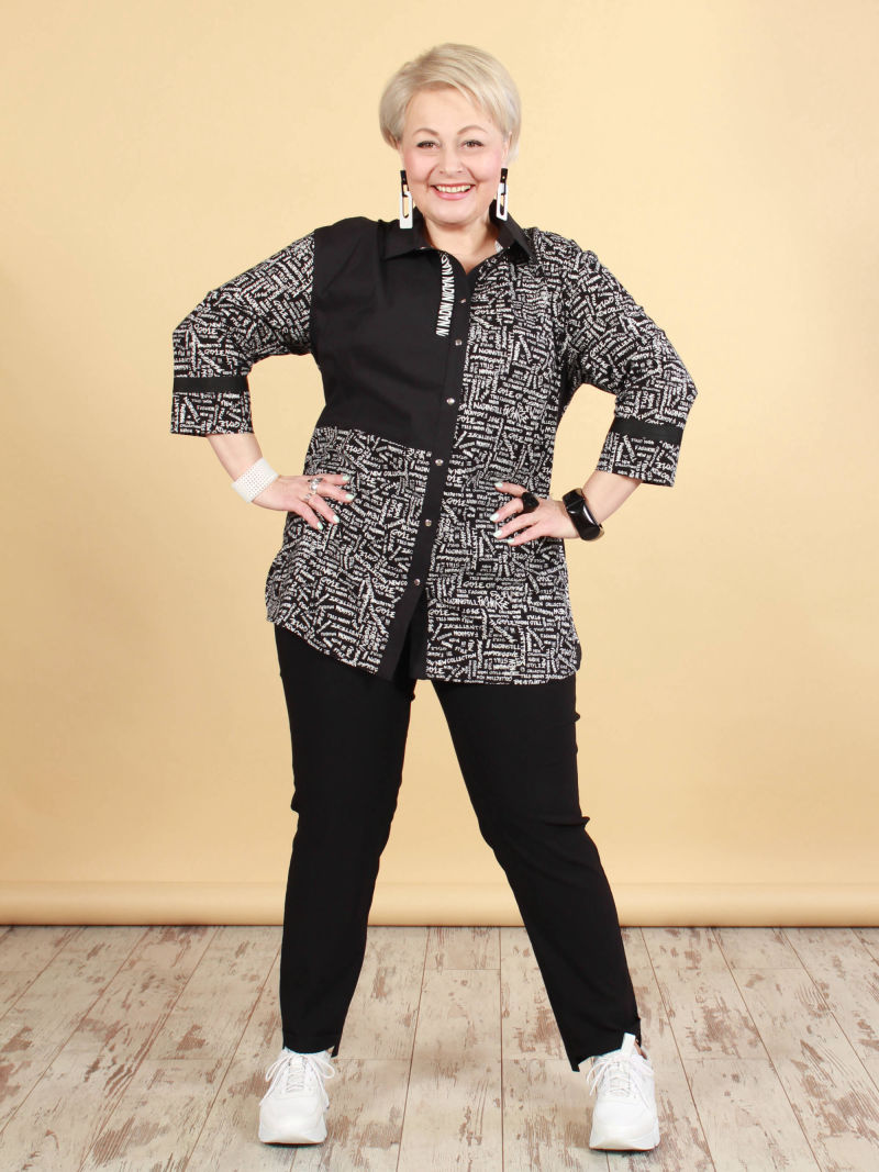 Модная туника из эластичного текстиля. Её можно носить как рубашку на голое тело, либо накинуть вместо лёгкого жакета. Поистине многофункциональная универсальная вещица. Оригинальность образу придает свободный покрой, складка в рельефном шве и фигурный низ. Рукав 7/8. Для создания образа могут подойти такие модели: брюки женские арт. 90321153, арт. 17435568, арт. 97919093, арт. 91535746. Параметры наших моделей: блондинки - 56р, 112-94-120; брюнетки - 52р, 104-85-112.
