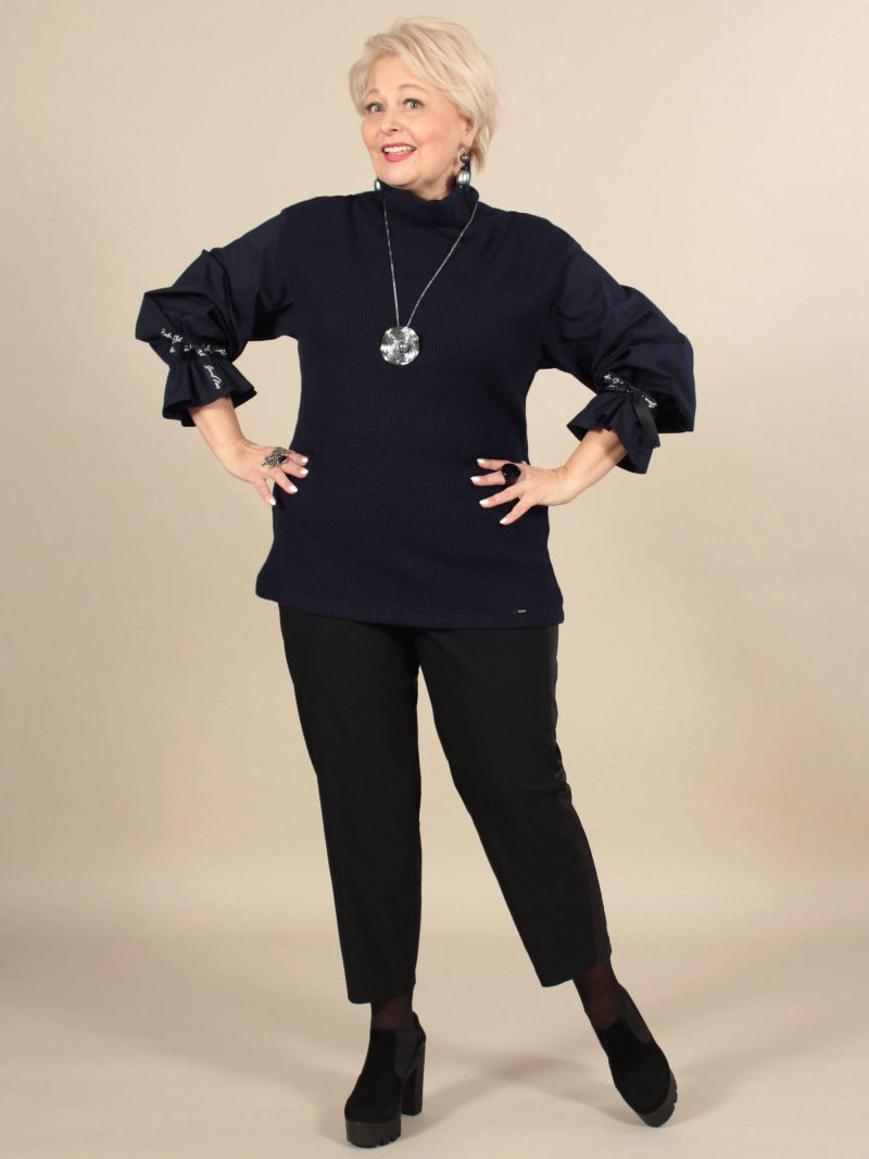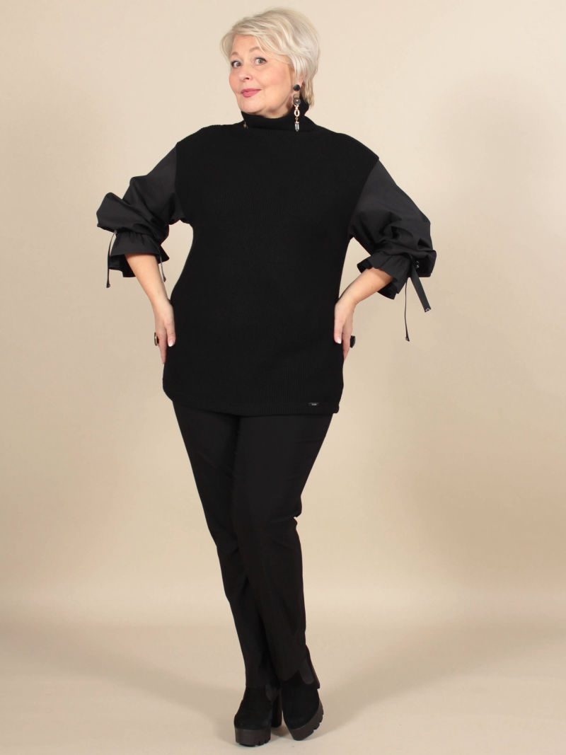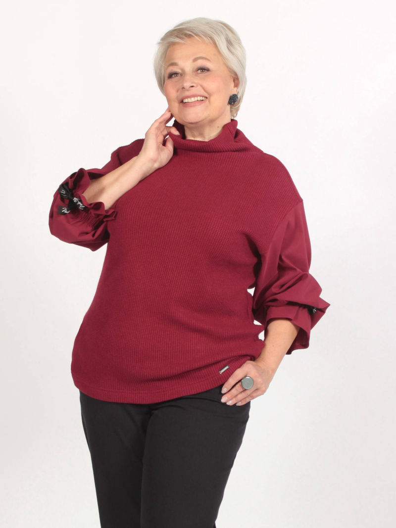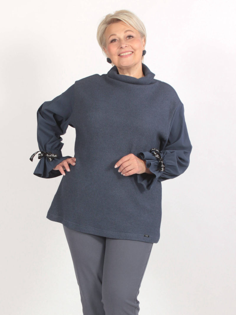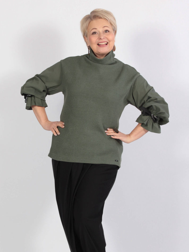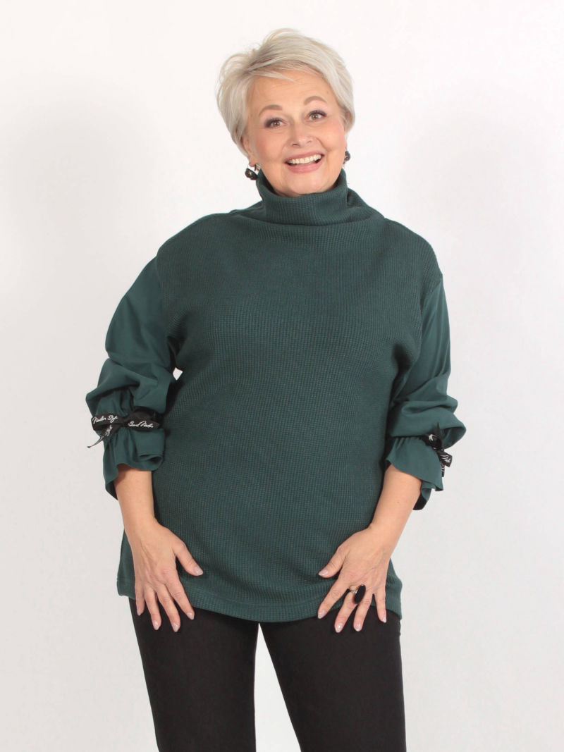 Обворожительная туника выполнена из вязанного трикотажа и хлопка со стрейчем. Линия плеча спущена, цельнокройный воротник-стойка изящно драпируется в мягкие складки. Объемный рукав фиксируется по низу на эластичную резинку и создает романтичный волан у запястья. Рукав декорирован фирменной лентой-завязкой. Комбинация различных материалов формирует ощущение многослойности изделия, эффект 2 в 1. Для создания образа могут подойти такие модели: юбка женская арт. 123023140, арт. 102692232, капри арт. 48431222, брюки арт. 79645513 , арт. 96589135 , арт. 122864615 , арт. 42044878, арт. , арт. 41453744 Plus size/плюс сайз/большие размеры/для полных женщин/надин оверсайз для девушек/белорусская одежда женская/Беларусь/офисное женское Белоруссия/oversize/турецкая ткань/туника/кофта/лонгслив/блузка укороченная/туника трикотажная/для подростка школа/для девочки школьная/спортивный/