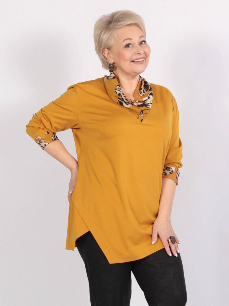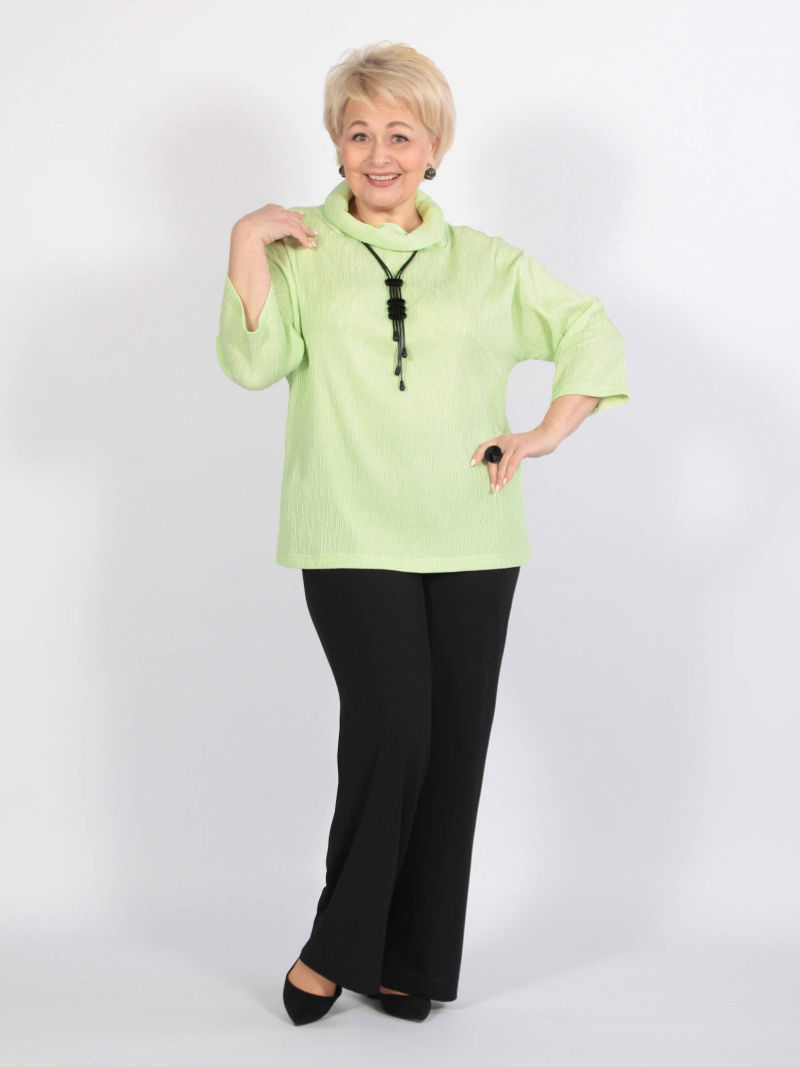 Модная туника из эластичного текстиля. Её можно носить как рубашку на голое тело, либо накинуть вместо лёгкого жакета. Поистине многофункциональная универсальная вещица. Оригинальность образу придает свободный покрой, складка в рельефном шве и фигурный низ. Рукав 7/8. Для создания образа могут подойти такие модели: брюки женские арт. 128720791, арт. 17435568, арт. 97919093, арт. 91535746, арт. 95451791. Параметры наших моделей: блондинки - 56р, 112-94-120; брюнетки - 52р, 104-85-112.