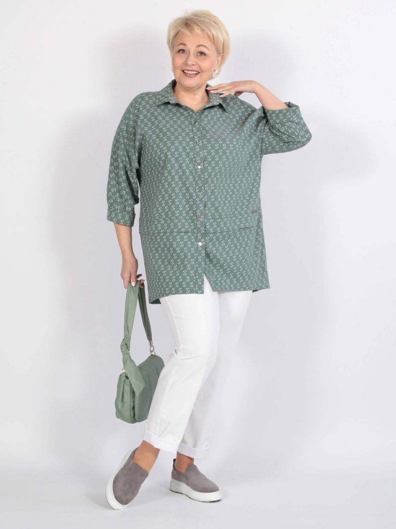 Легкая туника-рубашка из текстильной вискозы. Прямого силуэта с боковыми разрезами. Актуальная вещь для теплых дней. Может быть как самостоятельной блузкой, так и накидкой поверх майки. Блузка свободная, легкая, красивая, её легко комплектовать с разного цвета брюками, леггинсами, топами. И каждый раз это будет смотреться по-новому. РЕКОМЕНДАЦИЯ ПРОИЗВОДИТЕЛЯ! При выборе этой туники из текстиля просим проверить свои параметры в соответствии с нашей размерной сеткой, находящейся на месте последнего фото. Для создания образа могут подойти такие модели: брюки арт. 21367288, арт. 67221798, арт. 66215781, арт. 67000755, арт. 68782157