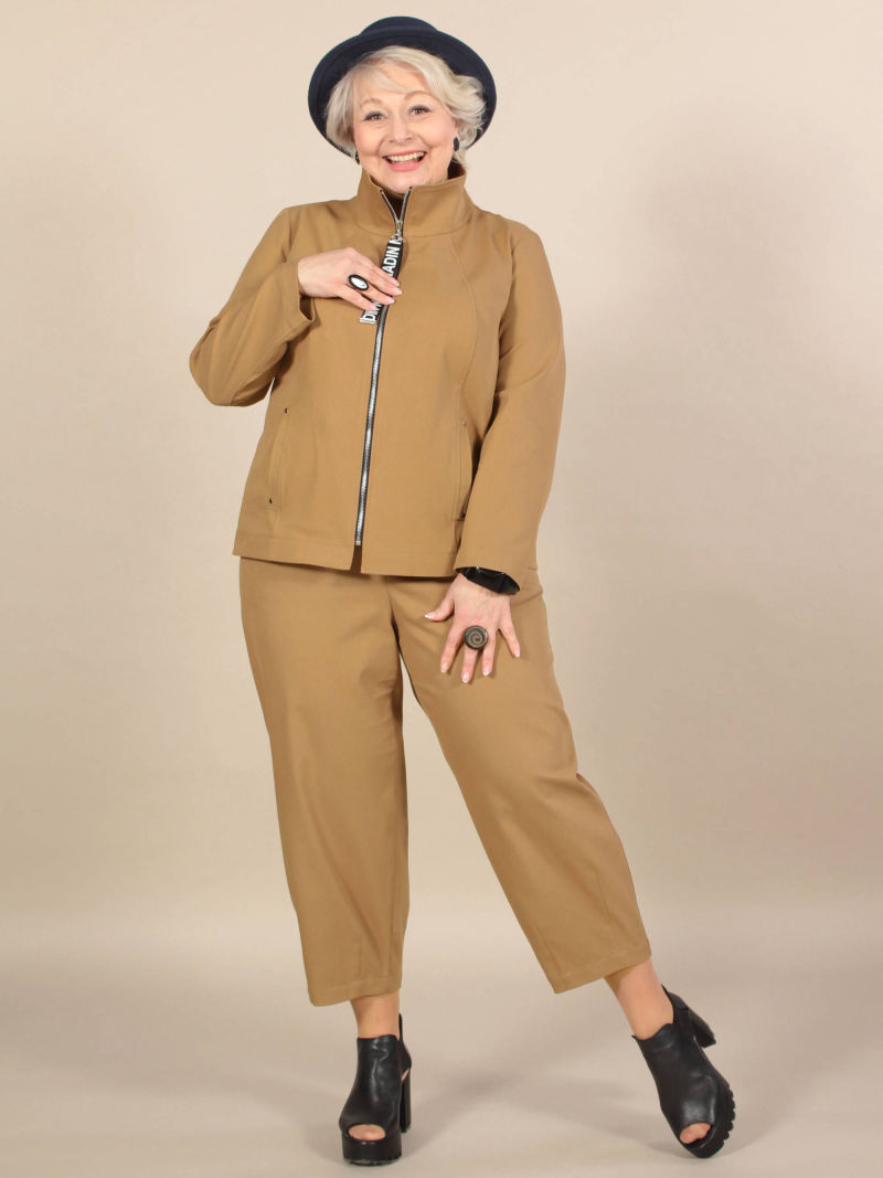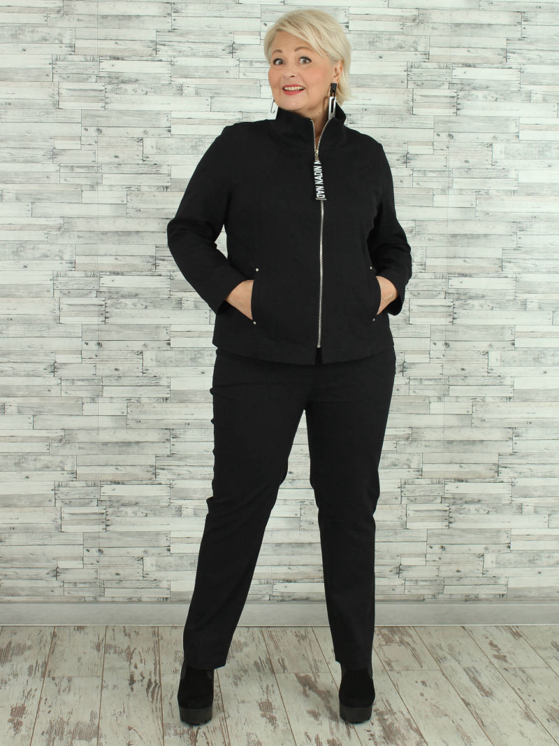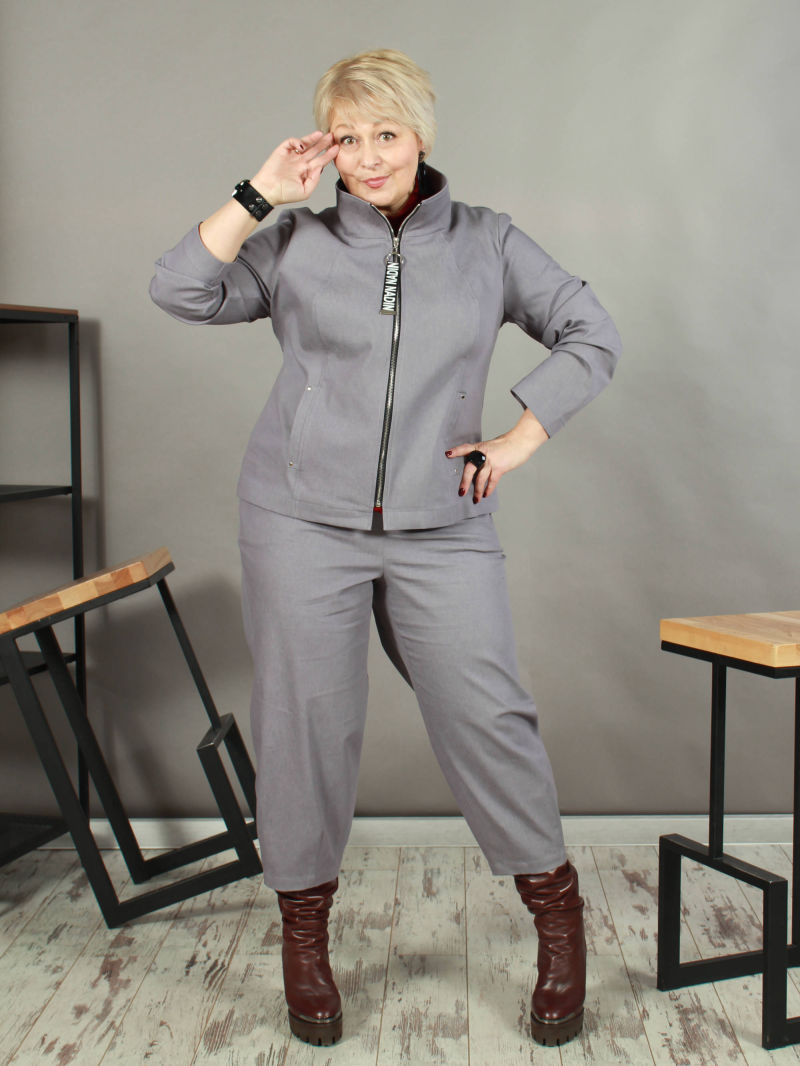 Элегантный жакет. Особую экстравагантность придает асимметричная застежка на молнии, зрительно сужающая фигуру. Притягивает взгляд сочетание фактур тканей.