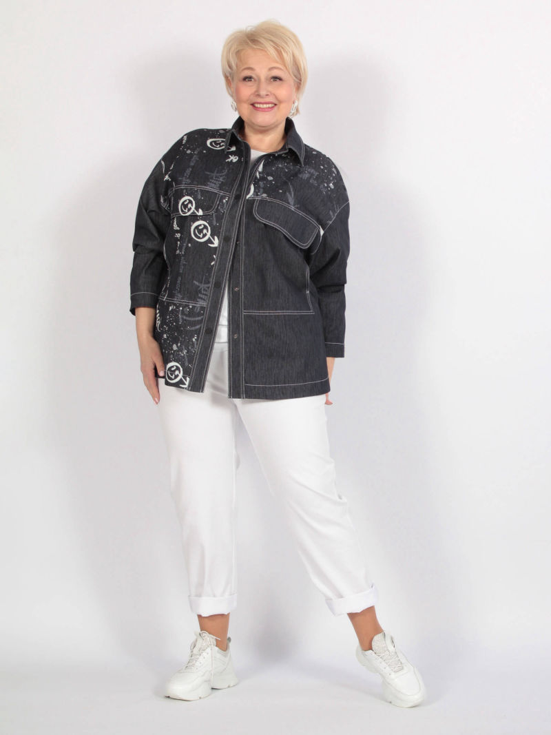 Длина изделия по спинке - 72 см, длина рукава c плечом - 74 см. Жакет-куртка из джинсовой ткани с неповторимым принтом, разработанным художником нашей фирмы. Пиджак свободной формы, с расширенным плечевым поясом и широкими рукавами. Застегивается на фирменные кнопки. По переду есть отрезные кокетки, в которые вставлены большие клапаны, есть накладные карманы. Отличное дополнение к брюкам арт. 70463181. Стильный дизайн создаст неповторимый образ для торжественного мероприятия, деловой встречи, офиса и для повседневной жизни. Пиджак отлично будет смотреться с джинсами, юбкой, брюками, кожаным сарафаном.